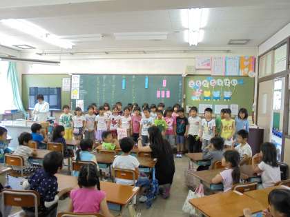 1年生を迎える会の後で,1年生に去年育てたアサガオのたねをプレゼントしました。