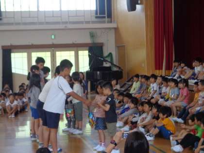 6年生からはメダルのプレゼントをもらいました。