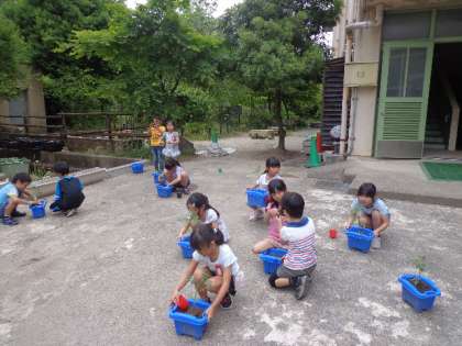 苗が生長して実ができるのが楽しみです。しっかり水やりをして世話をしましょう。