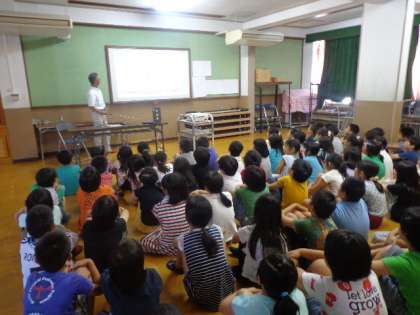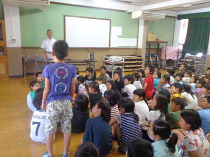 6月4日(木)5校時,総合的な学習の時間に,学校運営協議会,副会長の青島廣高さんに来ていただき,ネイチャーランドがどのようにしてできたかやこれから取り組む米作りのことについて教えていただきました。