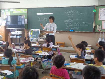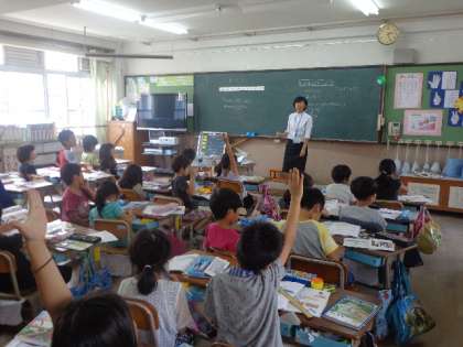 5月下旬より4週間,教育実習生の原田百果さんが先生になる勉強をしに常磐野小学校へ来ています。主に2年2組の伊藤学級で学んでいます。
