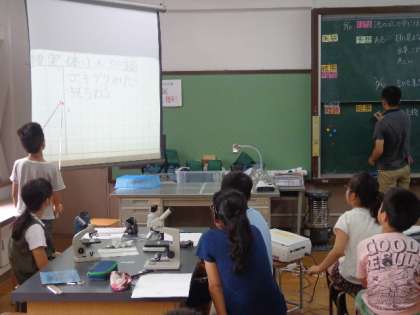6月19日(金)5年3組の理科で,池の中には,メダカの食べ物になる物があるのだろかについて学習しました。