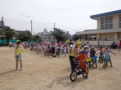 7月11日(土)14時から,常磐野交通安全推進会と常磐野小PTA共催の「自転車安全教室」が,児童・保護者・地域の方等総勢140人を超える人が参加して行われました。