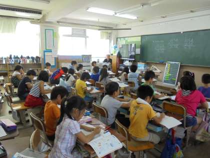 入れ物のかさを調べたクラスは,復習問題に取り組んでいます。