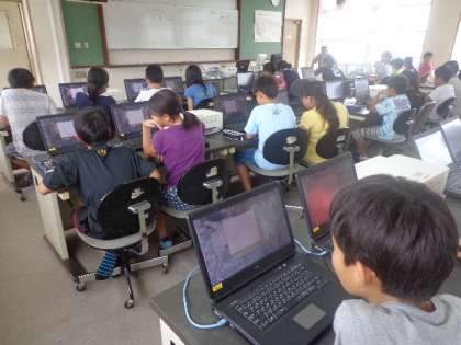 オープンスクールの2時間目は,授業を受けました。各クラスごとに理科・社会科・コンピュータを使った技術科の学習,ひまわり学級は音楽でした。