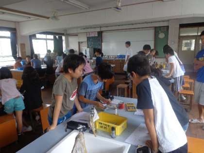 子どもたちはそれぞれ楽しそうに小学校とは違う中学校の学習を体験していました。