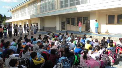 今日は,入所式やオリエンテーションの後,グループごとに地図を持って所内を回る「オリエンテーリング」。そして,夜には天体観測を予定しています。今夜の天気予報は晴れ,街中では見られないような「満点の星空」に子どもたちが出会える事を期待しています。