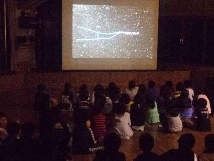 残念ながら日が暮れてから、雲が空を大きく覆ったために星が見えなくなり、残念ですが天体観測は中止になりました。オリエンテーションホールで、秋の星空をDVDで見ました。明日晴れたら、DVDで見た星や星座を探してみようと思います。