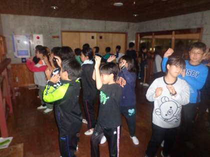 2日目の夜にも、ファイヤー練習をしました。クラスで話し合いもして少しでもよいものになるように練習をがんばっていました。明日の本番が楽しみです。