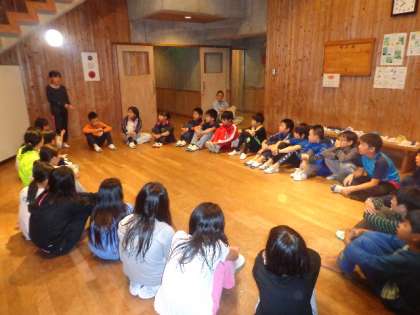グループや学級で一日を振り返りました。山登りをがんばったという声がよく聞こえてきました。