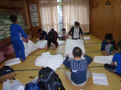 昨夜子どもたちはさすがにぐっすり寝ました。そして、朝から荷物整理、寝具の整理、宿泊棟の清掃などにがんばっています。来た時よりも美しくする気持ちで取り組んでいます。