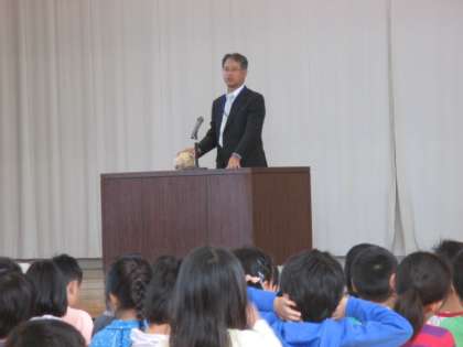 校長先生からは,今年のワールドカップで大躍進を見せたラグビー日本代表のチームの活躍についての話がありました。勝因としてあげられた,努力を積み重ねること,みんなは一人のために,一人はみんなのためにというチーム力のすばらしさ,格上のチームでも諦めない心の大切さを学びました。