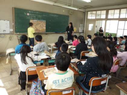 今回は3クラスともに社会の授業を観ていただきました。縄文時代の人々はどのような生活をしていたのかを資料を使って見つけ,考えました。現代のくらしとは大きく違っていた点がたくさんあることにも気づけていたようです。