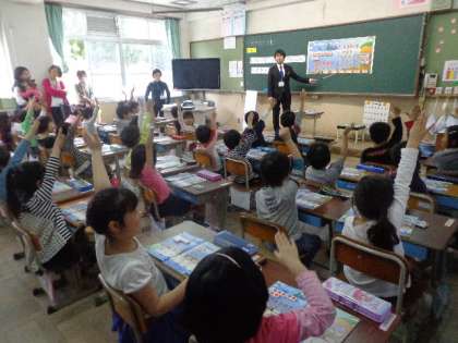 5時間目の授業も初めてです。それぞれの学級で算数の勉強をしました。緊張しながらもおうちの方に見てもらい,張り切って手をあげたり前に出て発表したりする姿が見られました。