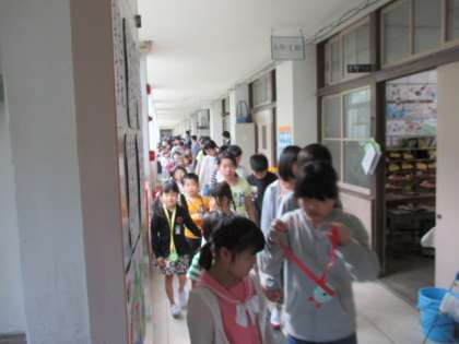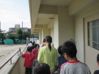 廊下で並んで待っていると,6年生が教室までお迎えに来てくれました。