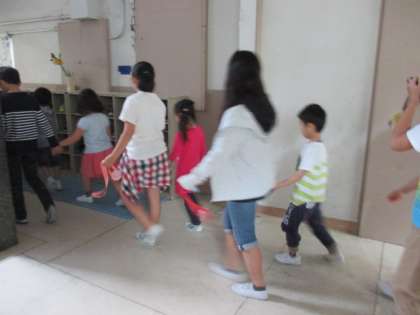 そこから手をつないで,体育館に出発です。