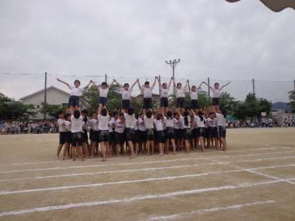 全員で完成させた最後の大技「万里の長城」でクライマックスに達しました。安全に気を付け昨年度までとは違う演技構成で見ているみんなに感動を与えてくれる素晴らしい演技でした。