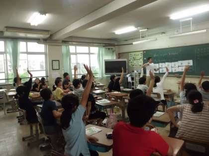 英語の学習では,誕生日を英語で聞きあう活動をしています。自分の誕生日を答えるには,月と数字の言い方を知っていなくてはいけませんが,担任の先生と繰り返し発音しながら楽しみながら確認していました。英語で話すと,自然と笑顔になるのは英語の持つ力でしょうか。