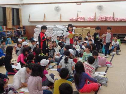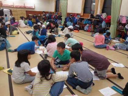 グループで話し合い、翌日頑張りたいことを代表の人が全体の場で発表しました。