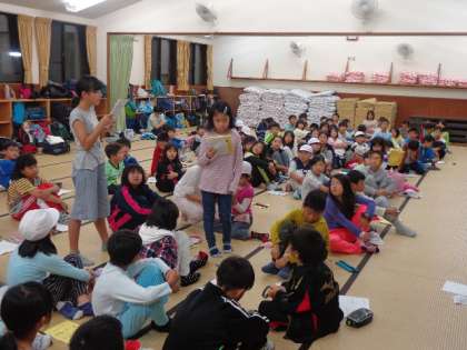 1日目の活動をすべて終えて、90畳の部屋で1日目の振り返りをしました。