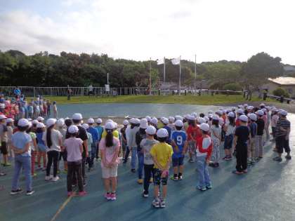 6月15日(水)みさきの家の活動も2日目になりました。朝朱雀第六小と松ヶ崎小との合同の朝の集いがありました。