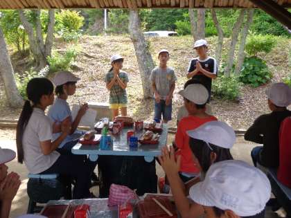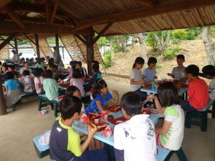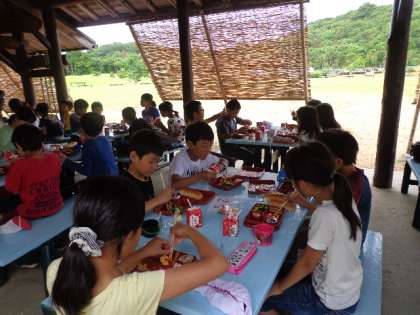 朝食をあずまやで食べました。近くではホトトギスなどの鳥の鳴き声が聞こえていました。自然がいっぱいです。