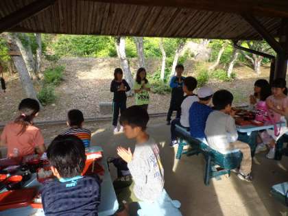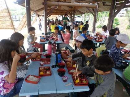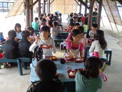 子どもたちはよく活動したので、おなかもすいていたのでしょう。夕食にはお味噌汁が付き、おかわりする子もたくさんいました。