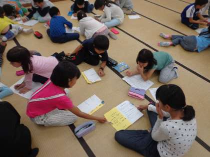 2日目の振り返りを最後にしました。まずグループで話し合い、明日に向けてのめあてを確認しました。