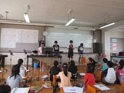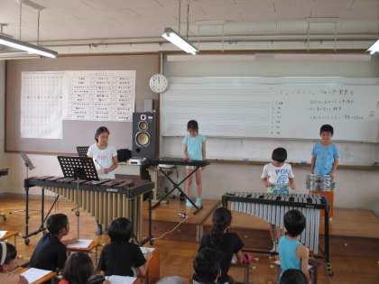 みんなの前に出て演奏するのは少し緊張した子もいたようですが,「上手にできた。」と満足そうな感想も聞かれました。他の班の合奏も,「音が合っていてきれいだった。」と楽しい発表会になったようでした。