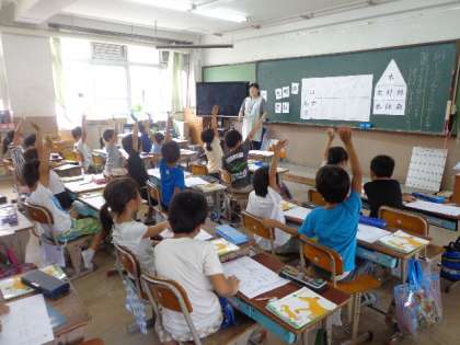 2年は,全学級国語の漢字の構成の学習でした。積極的に発表していました。