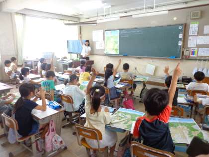 3年は1組英語活動,2組社会,3組音楽の授業でした。