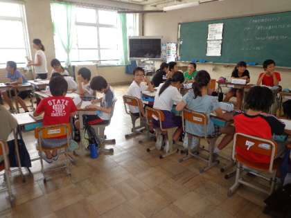 6年は全学級国語の授業でした。「学級討論会をしよう」というテーマで,グループで話しあったり,賛成・反対に分かれ意見を戦わせたりして討論会をしました。