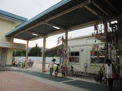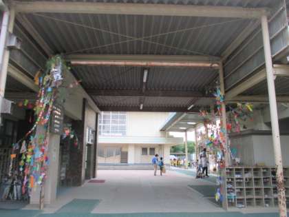おもいがつまった短冊,工夫して作ったかざりが風に揺られています。