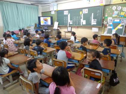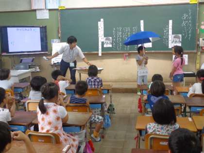 子どもたちは,担任が作ったテレビに映し出される資料を見たり,動作化やペアトークをしたりしながら,話し合いを深めていきました。