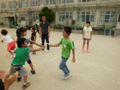 一人ひとりが一生懸命走り,クラス全員でバトンをつなぎました。