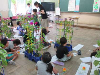 生活の時間に,大切に育ててきた自分のあさがおの「とっておき」をみんなに紹介しました。