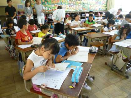 3年生の国語です。多くのお家の方が参観してくださいました。いつもよりちょっと緊張気味の子ども達ですね。