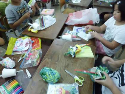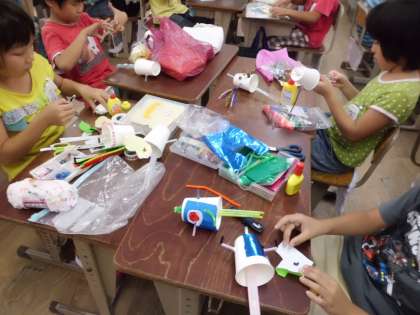 仕組みを動かしながら,使う材料を考えて工夫して作りました。