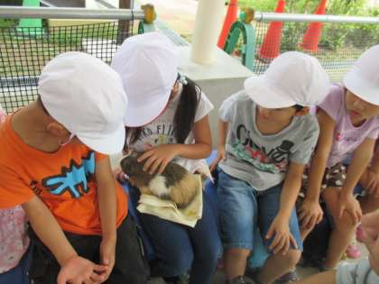最後に,飼育員さんが抱っこしているウサギをさわらせてもらいました。「こっちはふわふわだね。」「かわいい。」と大喜びでした。