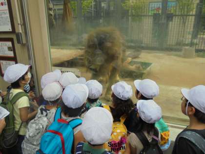 ライオンのおりの前では,大きな声で吠えるライオンの迫力に子どもたちはとても驚いていました。