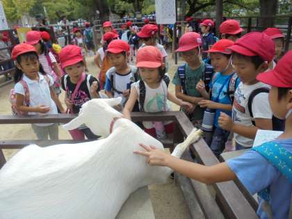 ヤギやヒツジとの触れ合いコーナーでは,親子のヤギを見て「かわいい。」とうれしそうにしていたり,初めて触るヤギに,恐る恐る手を伸ばしたりしている姿が見られました。