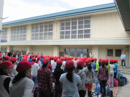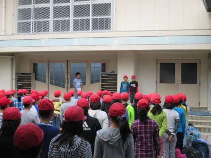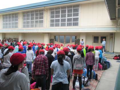 久しぶりに青空が見えました。きっとみんなの日頃の行いがいいからですね。欠席も遅刻もなく,5年生全員元気な顔でそろいました。校長先生の話,代表の言葉を聞いて,お世話になる教職員・ボランティアの方々の紹介の後出発していきました。