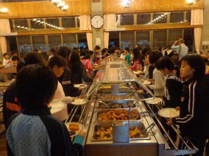 山の家の食堂はバイキング形式です。自分の好きなものを取って食べます。