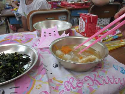 今日も給食調理員さん手づくりのプレゼントにみんな「かわいいー。」「いいなぁ。」と歓声が上がっていました。