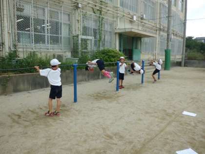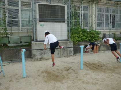 少し苦手な児童が多い鉄棒ですが,自分のできる技の確かめを楽しんでやっていました。出来る技がたくさんになるように練習していきたいですね。