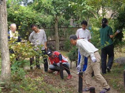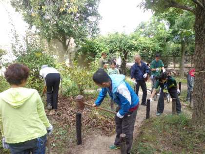 10月8日(土)午前9時から,ときわぎ親路の会の皆さん,PTA本部役員の皆さん,学校運営協議会理事の方々,本校教職員ら総勢約50名の方に参加いただき,ビオトープ,ネイチャーランドの整備と改修を行いました。