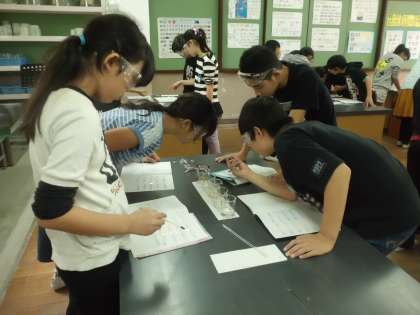 この日はリトマス試験紙を使い,水溶液を性質ごとに仲間分けする学習です。安全に気をつけながら熱心に取り組んでいました。