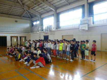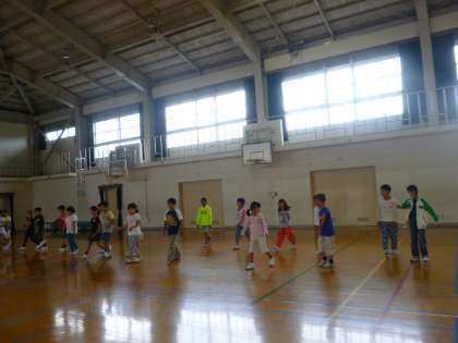 今日は、朝から体育館で学芸会の練習に励みました。舞台の上ではなく、フロアを使ってみんなの動きを通しました。出入りの順番をしっかりと覚えて動くことが大事だね。