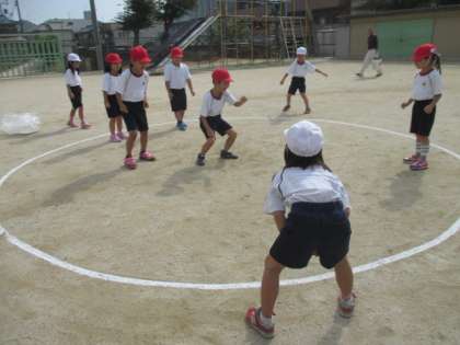 外からは,相手をねらってボールを転がしたり楽しそうに取り組んでいました。