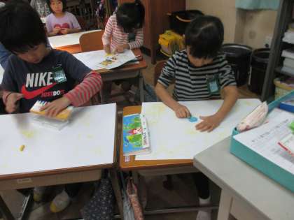 今日は,先週描いた下絵に色を塗っていく学習でした。